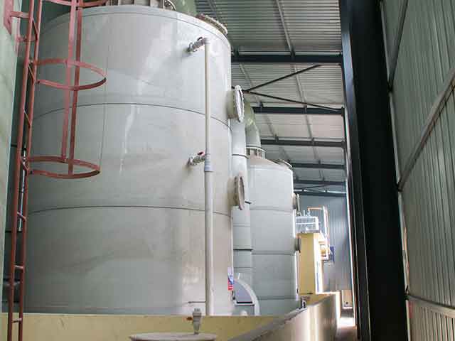 實例:塔式生產線:鋅鍋13.5×2.8×3.5(m),8個酸性罐,2個洗滌槽,1個輔助罐,高速天然氣脈沖加熱(6個燃燒器),年生產能力120000噸。